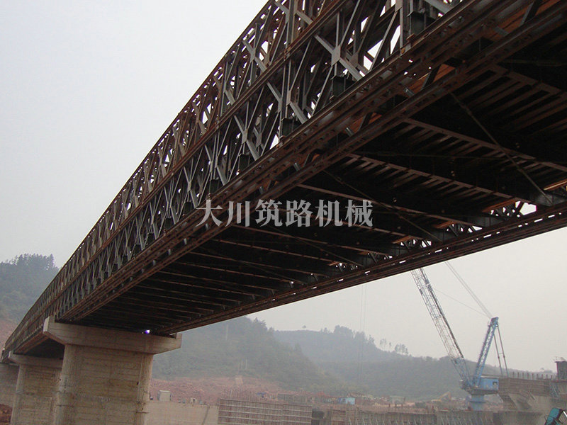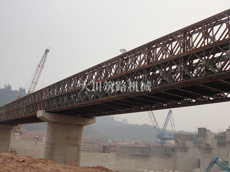 鋼橋型號:39M+39M+39M三排雙層結構下承式鋼橋。