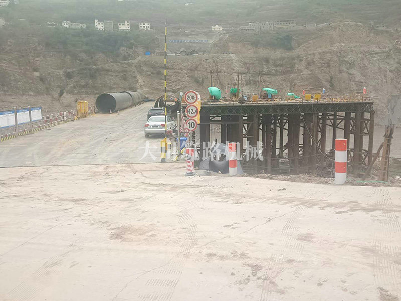 棧橋型號(hào):便橋采用(4×12m)+3m+9m+(2×12m)+3m,9跨貝雷架鋼便橋,橋梁全長(zhǎng)88.7m,橋梁寬度12m。