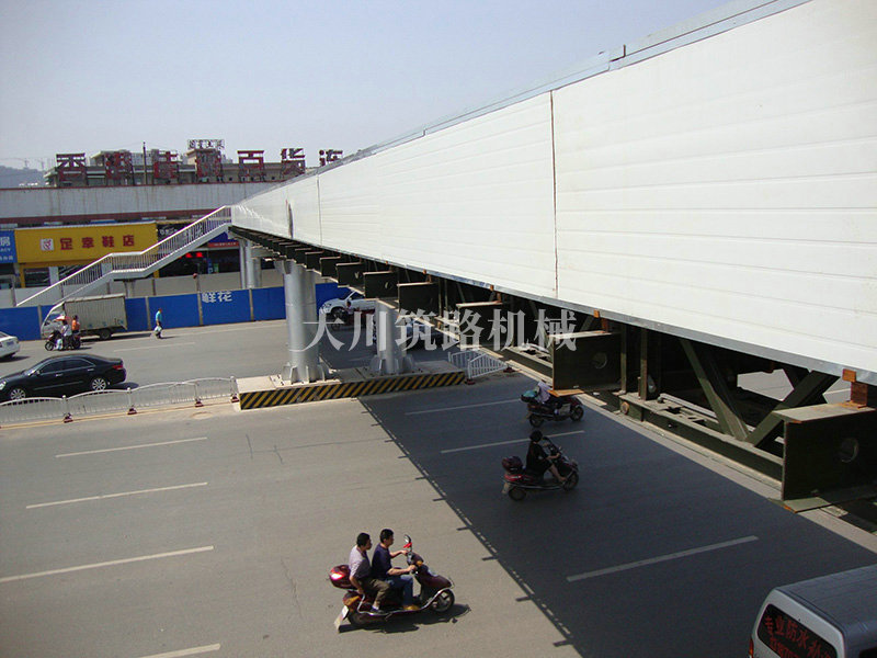 特點(diǎn):本鋼橋主梁采用標(biāo)準(zhǔn)的“321鋼橋”現(xiàn)場安裝并用朔板包邊,梯道用型鋼、鋼板在廠內(nèi)加工好現(xiàn)場拼裝,達(dá)到安裝便捷、美觀、舒適的要求。本鋼橋安裝工期緊,安裝條件有限,大都只能得用晚間在封鎖交通的情況下安裝。
